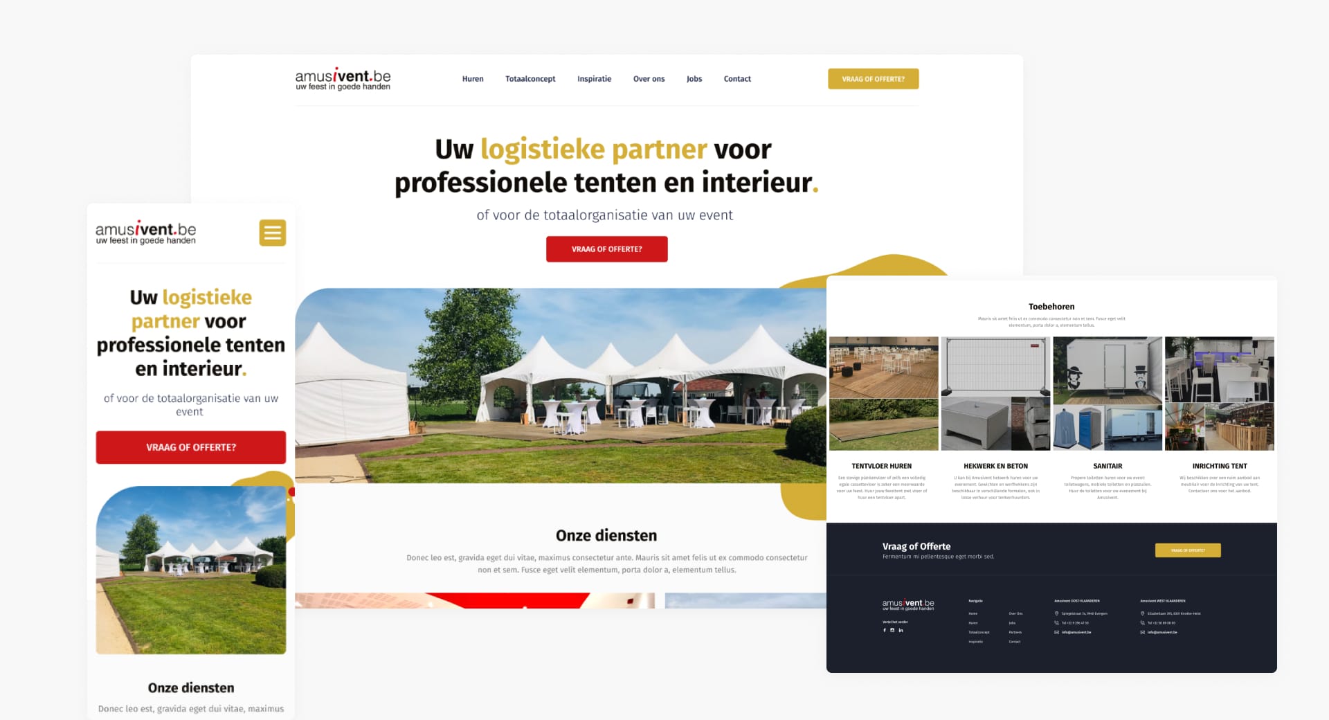 Home / Resultaten / AmusiventAmusiventEen geslaagd event begint met de juiste sfeer. En die bouwt Amusivent letterlijk op.Als ervaren eventpartner levert Amusivent alles wat nodig is voor een vlekkeloos event: van stijlvolle kadertenten en charmante pagodes tot vloeren, verlichting, geluid en zelfs DJ’s. Een totaalconcept waarmee elk event tot in de puntjes klopt.Wat begon als een partner voor particuliere feesten, groeide uit tot een sterke B2B-speler die bedrijven en organisaties ondersteunt bij professionele events en langdurige projecten.Die evolutie vroeg om een nieuwe website en een digitale strategie die hun vakmanschap en groei weerspiegelt.23%meer online contactaanvragen153contactaanvragen in 5 maanden via Google Ads-campagnes Speel video af De uitdagingAmusivent maakte de voorbije jaren een duidelijke transformatie door: van B2C naar B2B. Waar ze vroeger vooral particulieren hielpen, ligt de focus vandaag op bedrijven en grootschalige projecten.Die verschuiving vroeg om een frisse blik op hun online identiteit. De website, advertenties en positionering moesten niet langer feestvierders aanspreken, maar bedrijven in een professionele context.Amusivent zocht daarom een partner die technisch sterk is en strategisch meedenkt. Iemand die een conversiegerichte website kon bouwen en die als motor van hun online groei kon laten draaien.www.amusivent.beDe aanpakEen nieuwe website met focus op conversieDe nieuwe website van Amusivent werd opgebouwd rond duidelijke structuur, eenvoud in navigatie en gebruiksgemak.Bezoekers vinden sneller wat ze zoeken, kunnen vlot contact opnemen of een offerte aanvragen, precies wat belangrijk is voor een servicegerichte eventpartner.Het design straalt professionaliteit en betrouwbaarheid uit, volledig in lijn met het vakmanschap en de degelijkheid waar Amusivent voor bekendstaat. Grote beelden en een heldere opbouw brengen de verschillende diensten overzichtelijk in beeld, zowel voor bedrijven als particulieren.Onder de motorkap zorgde Conversal voor een stabiel en flexibel CMS, aangevuld met slimme integraties die het beheer, de snelheid en de veiligheid van de website ondersteunen.De website vormt vandaag het centrale vertrekpunt van hun online communicatie en ondersteunt actief de groei van Amusivent. Gerichte digitale groeiNaast de website namen we ook de digitale marketingstrategie van Amusivent in handen. We beheren en optimaliseren hun Google- en Meta-advertenties, met een duidelijke focusverschuiving van B2C naar B2B.Waar Amusivent vroeger vooral zichtbaar was bij particulieren die tenten of eventmateriaal huren, richten we ons vandaag op bedrijven en organisaties die op zoek zijn naar professionele, langdurige oplossingen.Tegelijk blijft de brede zichtbaarheid binnen het particuliere segment waardevol om de naamsbekendheid van het merk verder te versterken.De campagnes worden continu opgevolgd en ondersteund door meetbare data, waardoor we op elk moment kunnen bijsturen en optimaliseren voor de beste resultaten.De resultatenNa de lancering werd duidelijk dat de vernieuwde aanpak zijn vruchten afwierp.De website trok merkbaar meer geïnteresseerden aan, terwijl de online campagnes voor extra zichtbaarheid en herkenning zorgden. Zowel via Google Ads als via Meta Ads kwamen er meer waardevolle contacten binnen, wat bijdroeg aan een groter bereik en een sterker imago als betrouwbare eventpartner in de regio.23%meer online aanvragen via de website153contactaanvragen in 5 maanden via Google Ads-campagnes24conversies via Meta Ads-campagnes in 5 maandenKunnen we ook jouw digitaal verhaal schrijven?Steven is al meer dan 15 jaar actief in de digitale wereld. Van eerste idee tot succesvolle website of campagne: hij weet wat werkt. En vooral waarom.Hij luistert, stelt de juiste vragen en denkt mee tot je voelt: yes, dit klopt.Een kennismaking kost niks. Behalve misschien een goeie koffie.[email protected]0478 95 12 23Klaar om kennis te maken?We blazen je niet omver met loze beloftes, maar met strategie, creativiteit en bewezen impact. Ontdek wat we samen voor jouw business kunnen betekenen.Bekijk onze casesContacteer ons